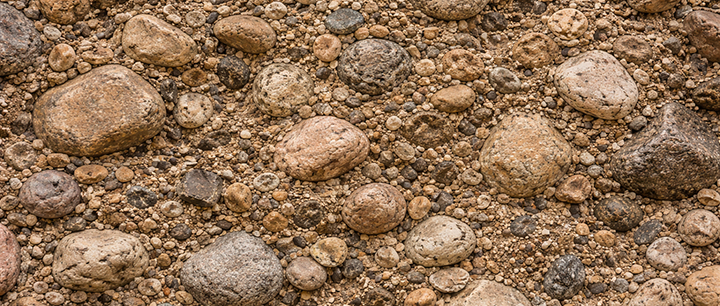 堆積岩は粒子の大きさで分類され、礫岩は一般に粒径2mm以上の粒子が多く含まれるものを指し、砂岩、泥岩になるほど粒径は小さくなる。