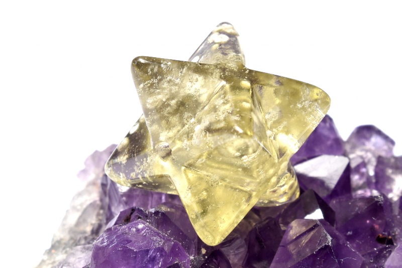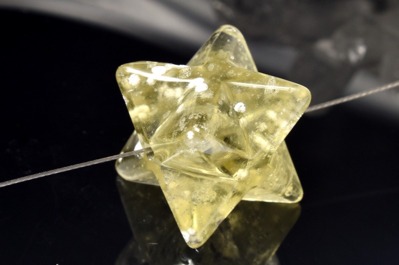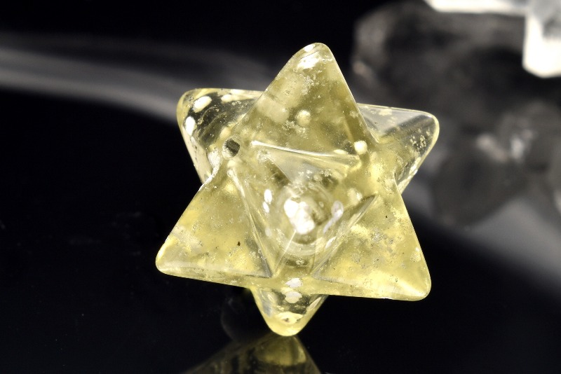 【1点物】AAA☆透明レモンカラー リビアングラス 13.5x13.5mm マカバスター 六芒星 ルース _PC4036