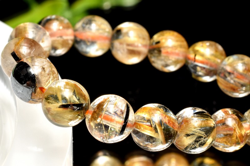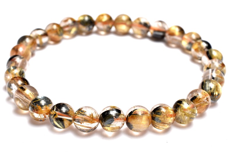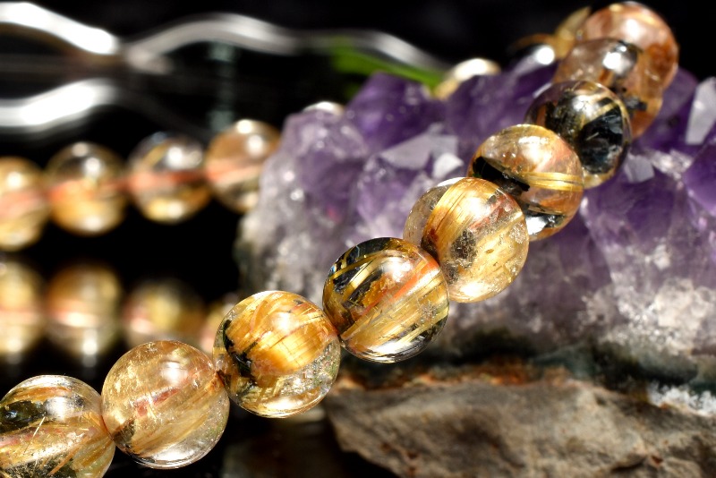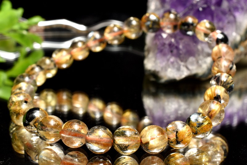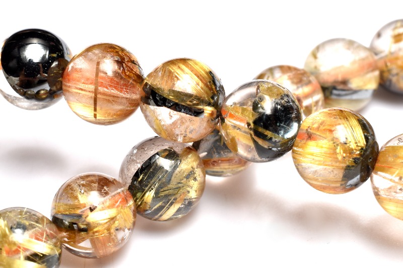 材質ヘマタイトインタイチンルチルクォーツ 6.5mm 産地:ブラジル