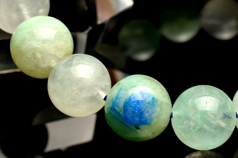 ブルーが本体の多くを占め、グリーンやブラウンなどのカラーが混ざり合って、出来ているため、丸く加工されたクリソコラは、宇宙から見た地球のような外観となっています。