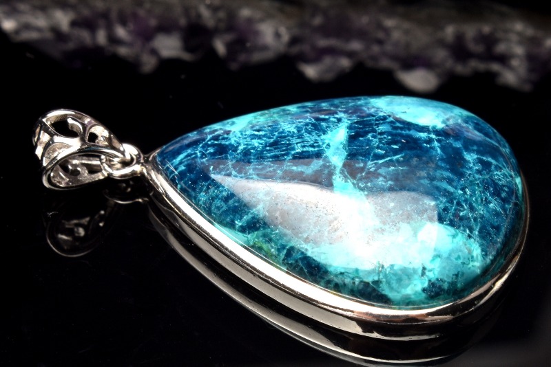 特徴・意味ブルーグリーンの発色が美しく、天然由来の幻想的な模様が見ていて飽きないペンダントトップです。