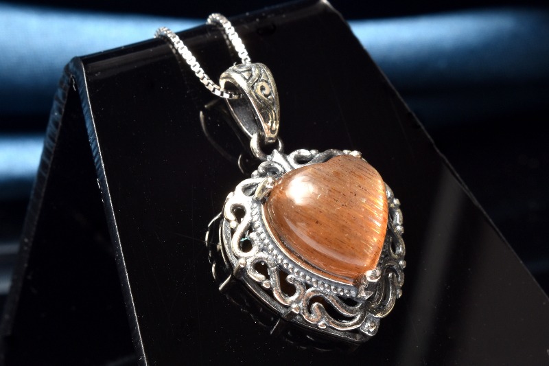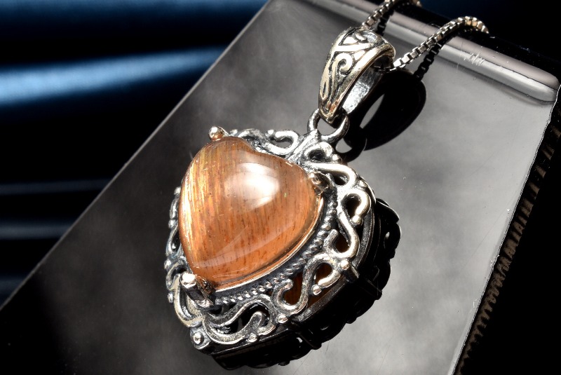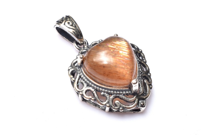 【1点物】Silver925キャッツアイ マイカサンストーン 10x10mm ハート ペンダントトップ _PC5320