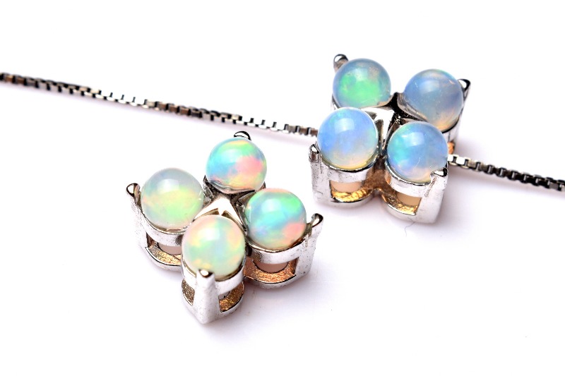 オパールの語源は、古代サンスクリット語の「宝石」を意味する「ウパラ」であるとされています。オパールは水中で微小な珪酸球が沈殿し、岩石の隙間などに密に蓄積して形成される石です。水晶等と同じく、珪素をメインにする鉱物ですが、その成り立ちから、水分が多く、硬度も非常に柔らかい石です。