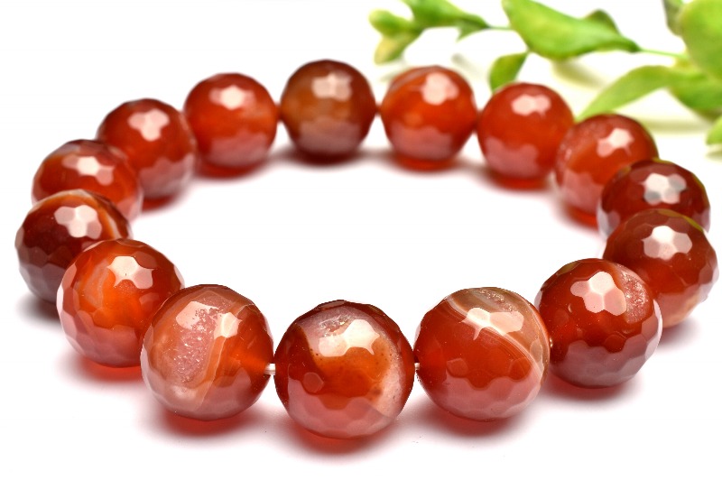 【1点物】大珠◇笑口ジオード カーネリアン赤瑪瑙 14mm 128面カット ブレスレット _MA7269
