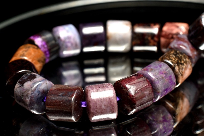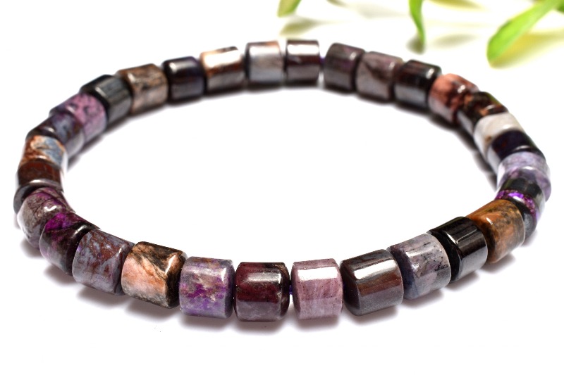 【1点物】高発色◇癒やしの石 スギライト(杉石) 5.5-6x6.5mm チューブ ブレスレット _MA7993