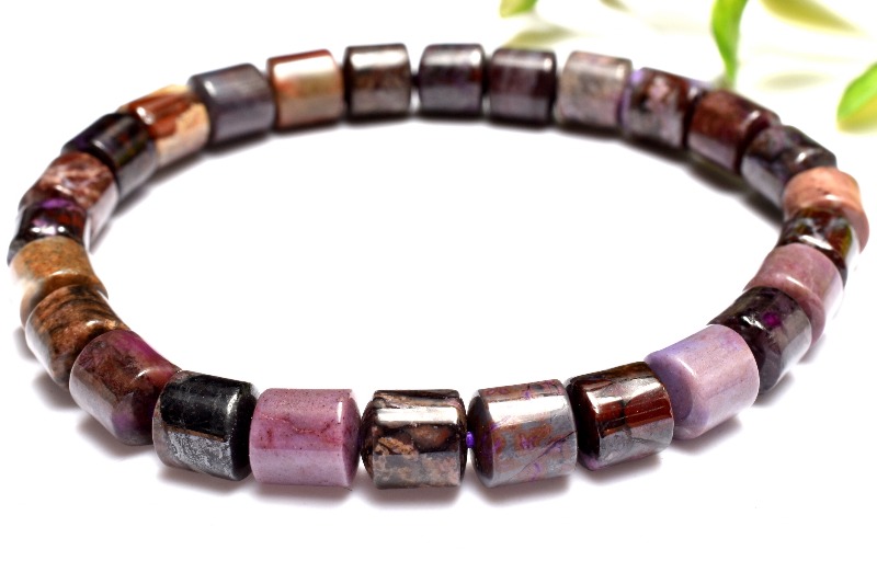 【1点物】高発色◇癒やしの石 スギライト(杉石) 6.5-7x6.5mm チューブ ブレスレット _MA7995
