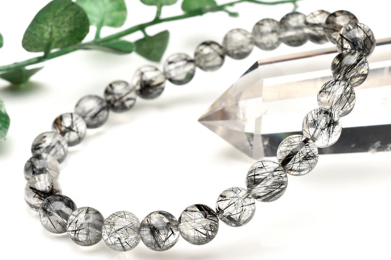 材質ブラックトルマリンインクォーツ 7mm 産地:ブラジル