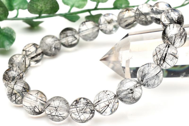 材質ブラックトルマリンインクォーツ 9.5mm 産地:ブラジル
