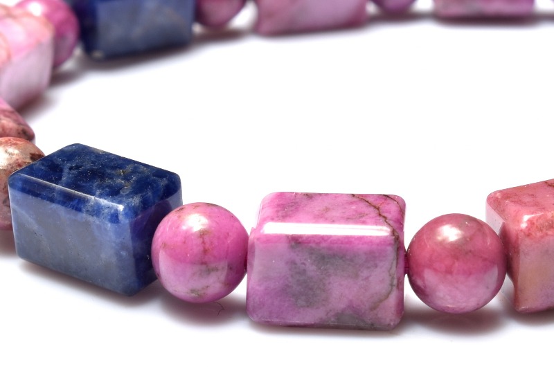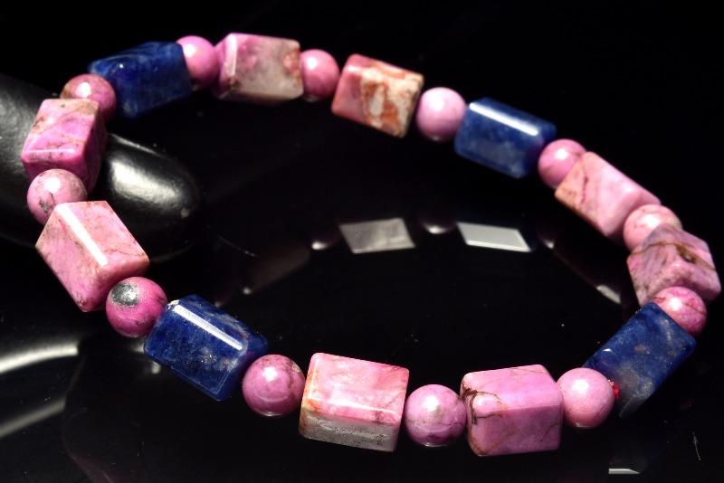 【1点物】5A級☆希少高発色 コバルトドロマイト(コバルトカルサイト)&ソーダライト 9.5-10x6.5-7(丸玉6)mm チューブカット ブレスレット _MA8291