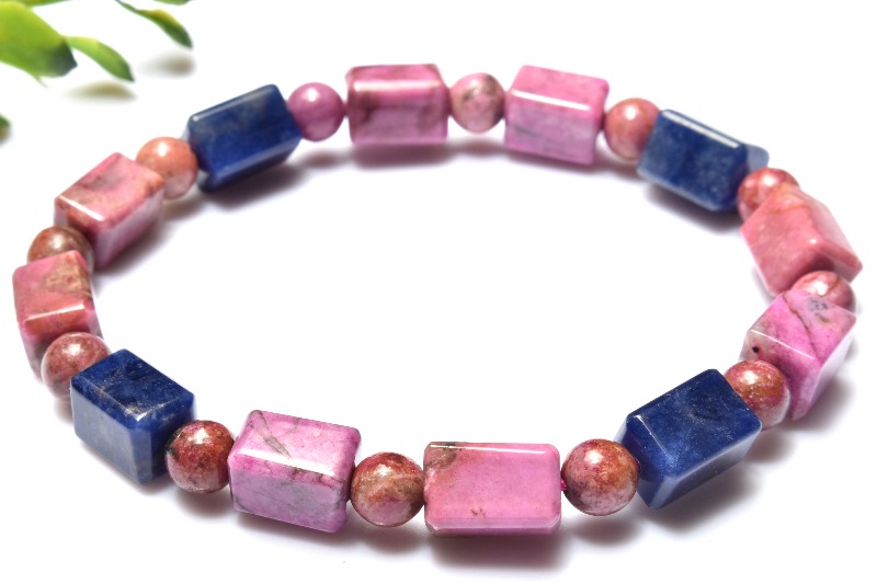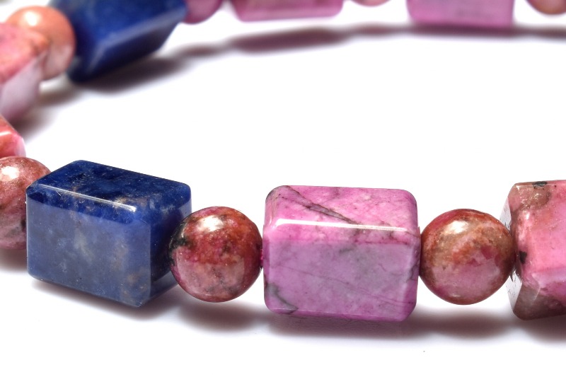 【1点物】5A級☆希少高発色 コバルトドロマイト(コバルトカルサイト)&ソーダライト 9-10x6.5-7(丸玉6)mm チューブカット ブレスレット _MA8293