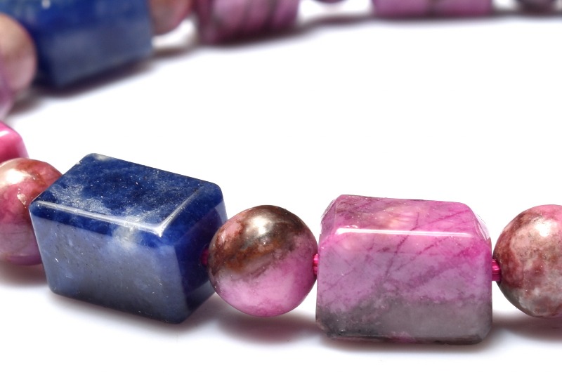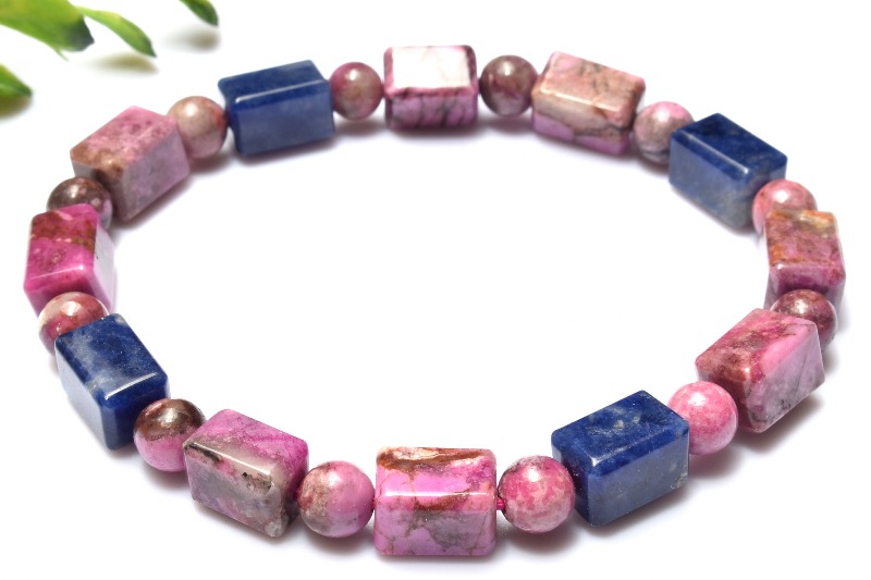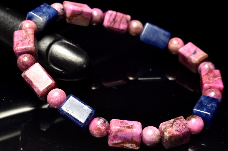 【1点物】5A級☆希少高発色 コバルトドロマイト(コバルトカルサイト)&ソーダライト 9.5-10x6.5-7(丸玉6)mm チューブカット ブレスレット _MA8296