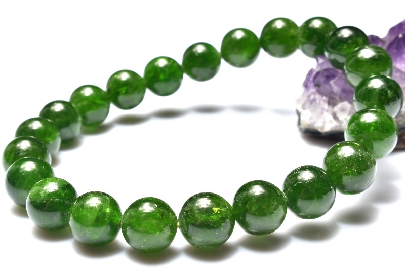 ダイオプサイドは、白色や濃い緑色など、さまざまな種類があるパワーストーンです。中でも人気が高いのが、エメラルドに似た明るいグリーンカラーのクロムダイオプサイド。金属のクロムを含むことで、鮮やかな緑色が発色されます。高品質なものになると透明感があり、知る人ぞ知る宝石の一つとして人気を集めています。