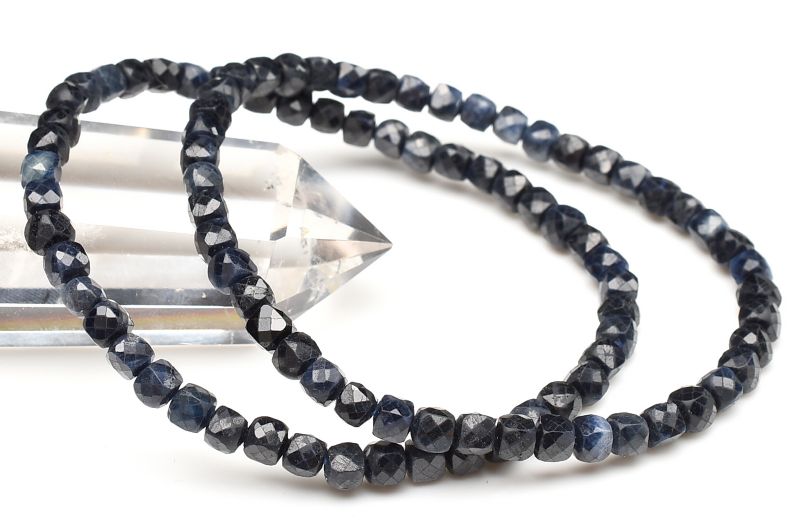 キラキラカット◇ サファイア 3.5-4mm キューブカット ブレスレット 1個売り _B1466