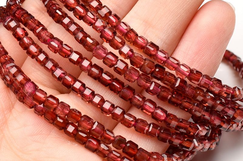 キラキラカット◇ ガーネット 2.5-3.5mm キューブカット ブレスレット 1個売り _B1471
