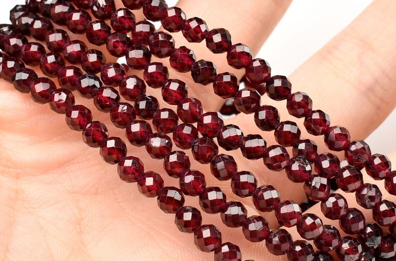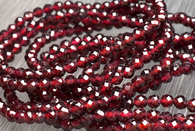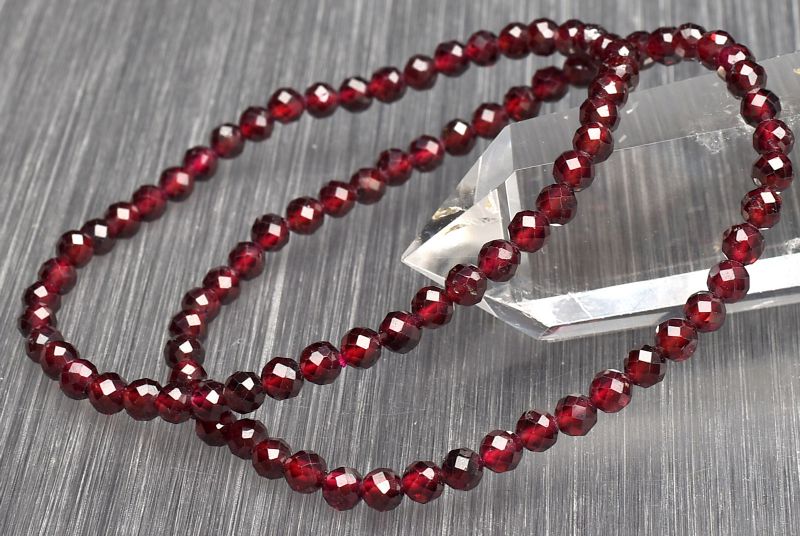 キラキラカット◇ ガーネット 4mm ボールカット ブレスレット 1個売り _B1481