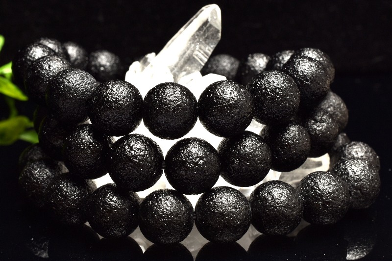 インドネシア産 黒隕石テクタイト 8.5mm ブレスレット 1個売り_BG5913-85