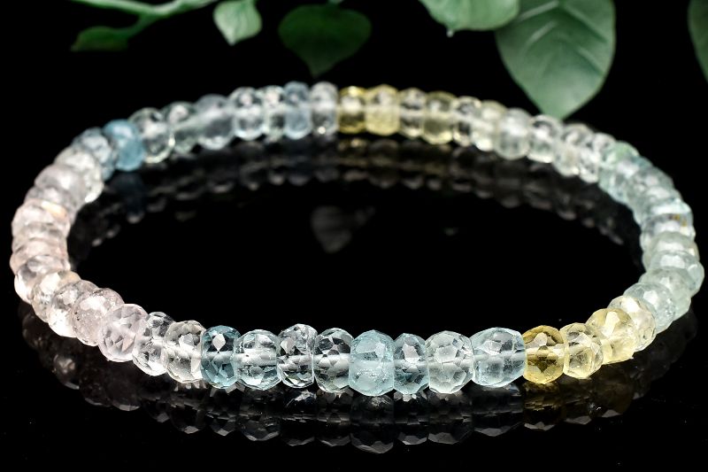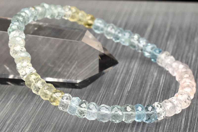 【1点物】AA+☆マルチカラー MIXベリル 3-4x5.5mm ボタンカット ブレスレット _U7473
