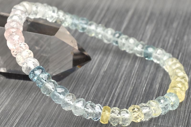【1点物】AA+☆マルチカラー MIXベリル 3-4x6mm ボタンカット ブレスレット _U7475