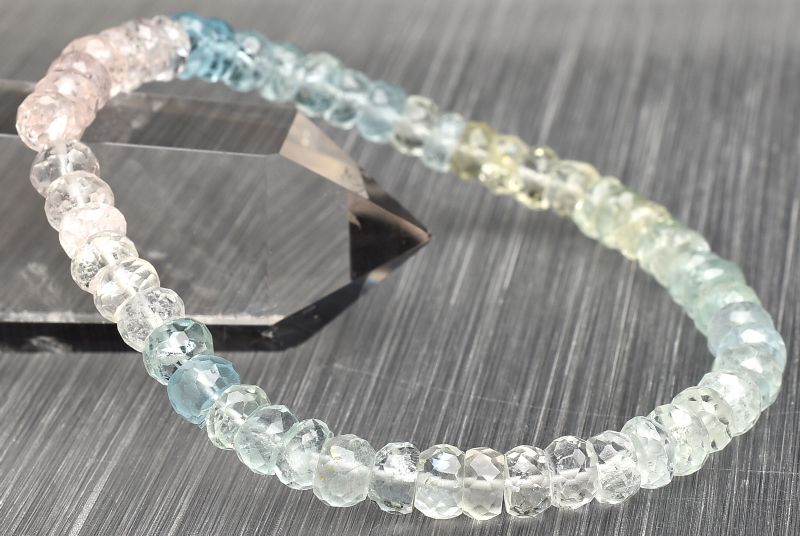【1点物】AA+☆マルチカラー MIXベリル 3-4x6mm ボタンカット ブレスレット _U7476