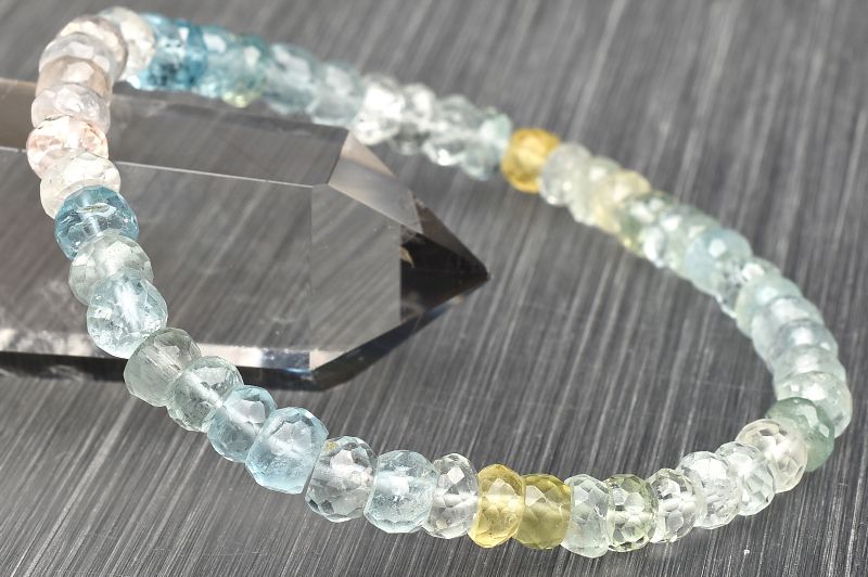 【1点物】AA+☆マルチカラー MIXベリル 3-4x6mm ボタンカット ブレスレット _U7479