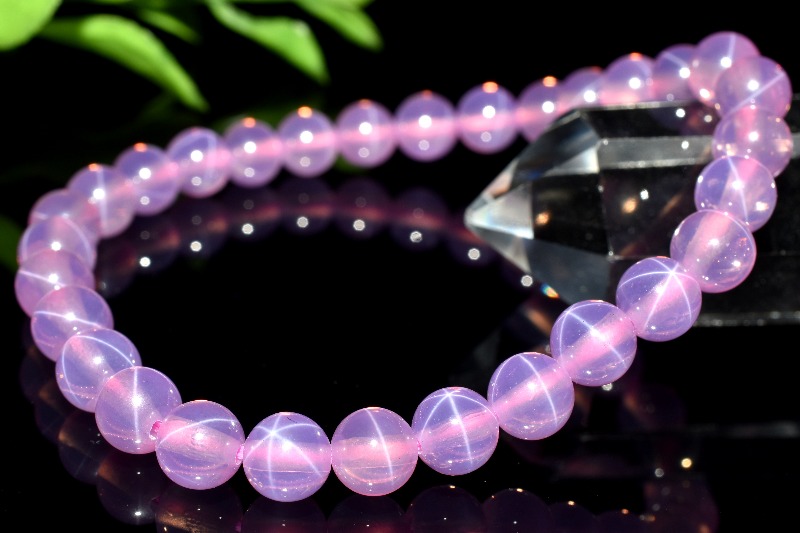 【1点物】6条スター スターピンクサファイア(合成コランダム) 6mm ブレスレット _MA9026
