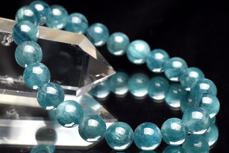 【1点物】高品質天然色◇グリーンブルー ブルーグリーンカイヤナイト 8.5mm ブレスレット _U7520