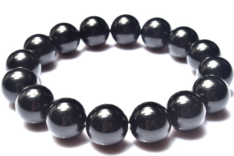 【1点物】希少レア テクタイト黒隕石 14mm ブレスレット _MA9391