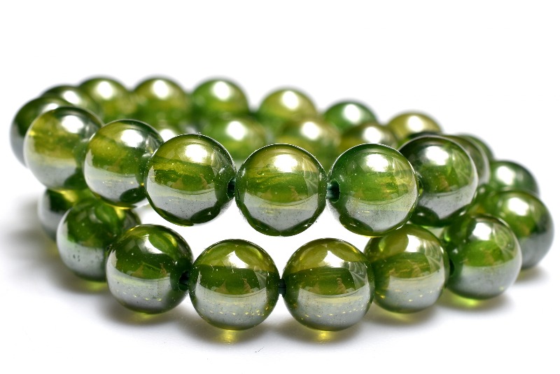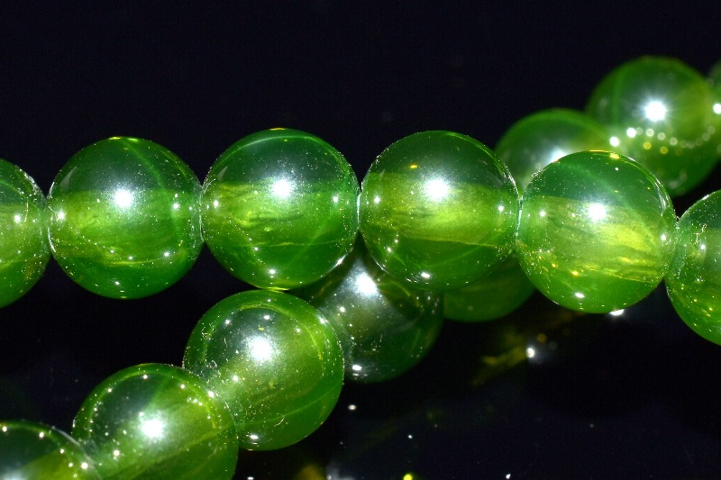 高発色グリーンに、光を当てると美しいスター効果が楽しめる人気の合成石です。