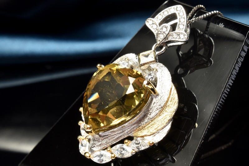 透明感溢れるシトリンのカット加工で気品が漂っています。