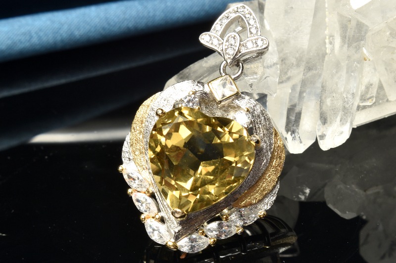 【1点物】Silver925◇カットの輝き シトリン 16x15mm ハート ペンダントトップ _PC6285