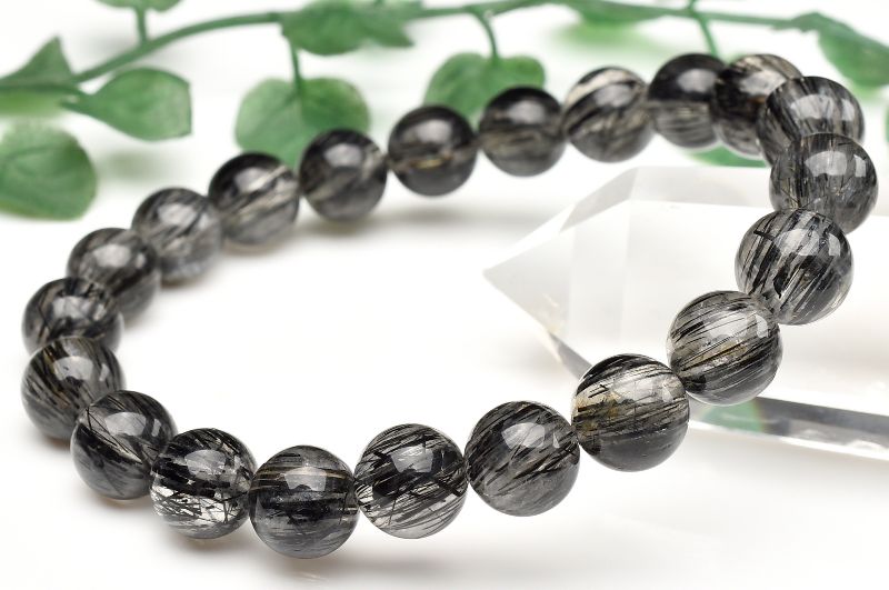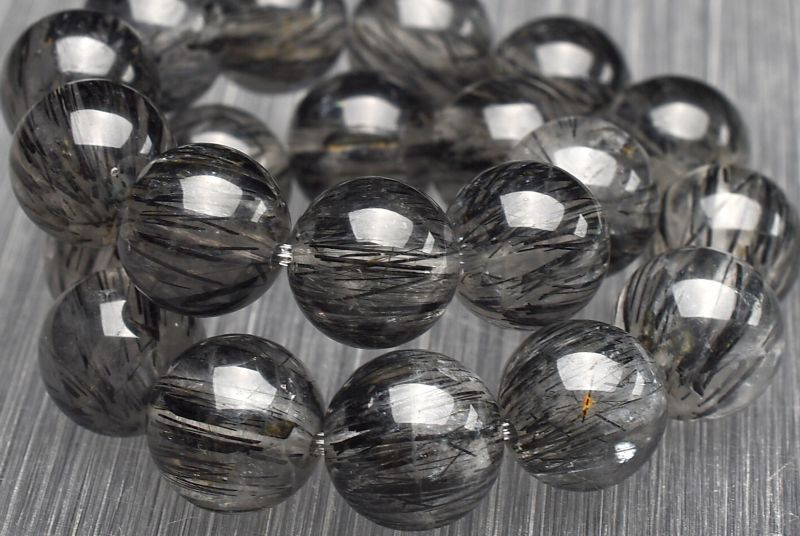 材質ブラックトルマリンインクォーツ 9mm 産地:ブラジル