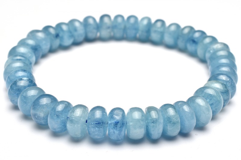 【1点物】海色ブルー アクアマリン 4-6x8.5mm ボタン ブレスレット _MB73