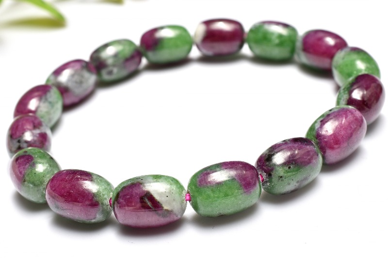 【1点物】鮮やか◇ルビーたっぷり ルビーインゾイサイト 11.5-12x8mm チューブ ブレスレット _MC240