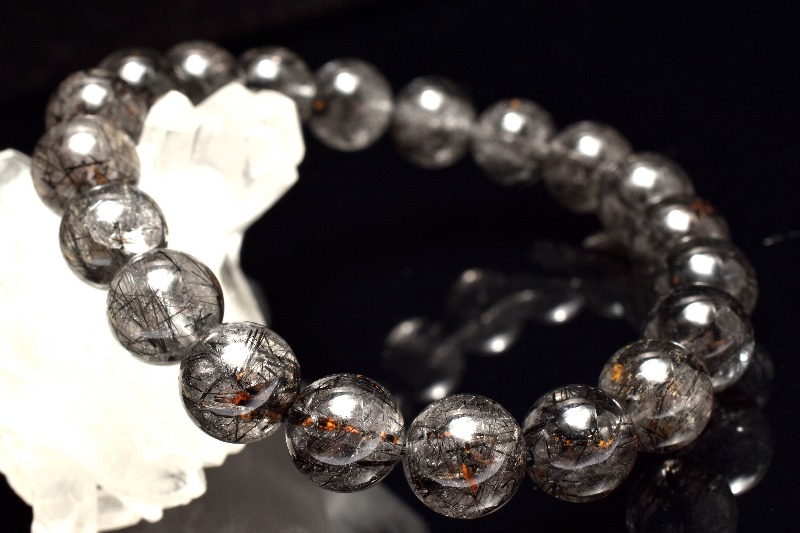 材質ブラックトルマリンインクォーツ 9.5mm 産地:ブラジル