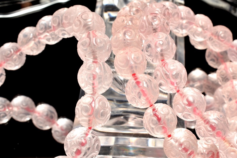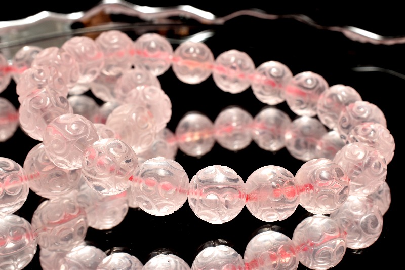 繊細彫刻 ローズクォーツ 9.5mm マニ車 ブレスレット 1個売り _BG6135-95
