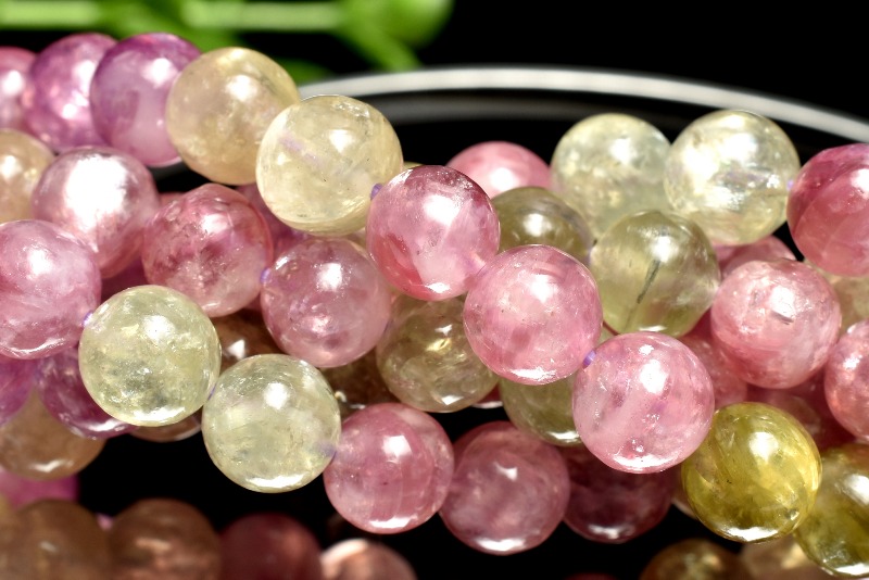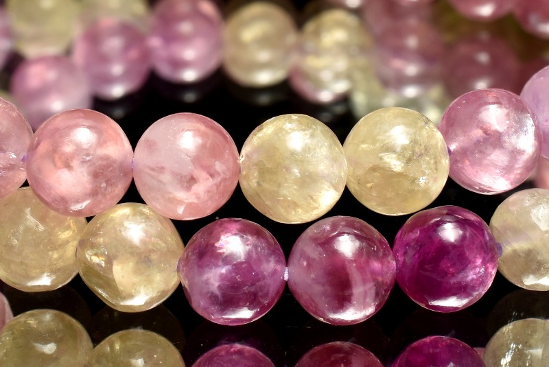 雲母は結晶の軸に沿って一定の方向に割れやすい性質を持っています。レピドライトは硬度が2.5〜4と柔らかい石のため、強い衝撃には注意が必要です。