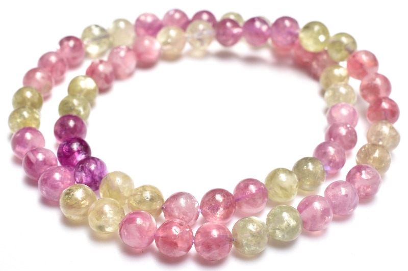 レピドライトは、キラキラとしたうろこ状の結晶が特徴である雲母の一種。雲母自体はよくある鉱物ですが、リチウムを多く含むことによって淡い紫やピンク色に染まったものが、レピドライトと呼ばれています。トルマリンやクンツァイトなどと一緒に見つかることが多く、混合結晶が産出されることもあるようです。