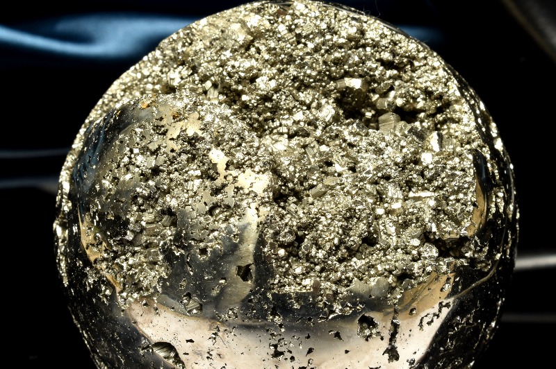 和名を「黄鉄鉱(おうてっこう)」と言い、鉄と硫黄からできている硫化鉱物です。