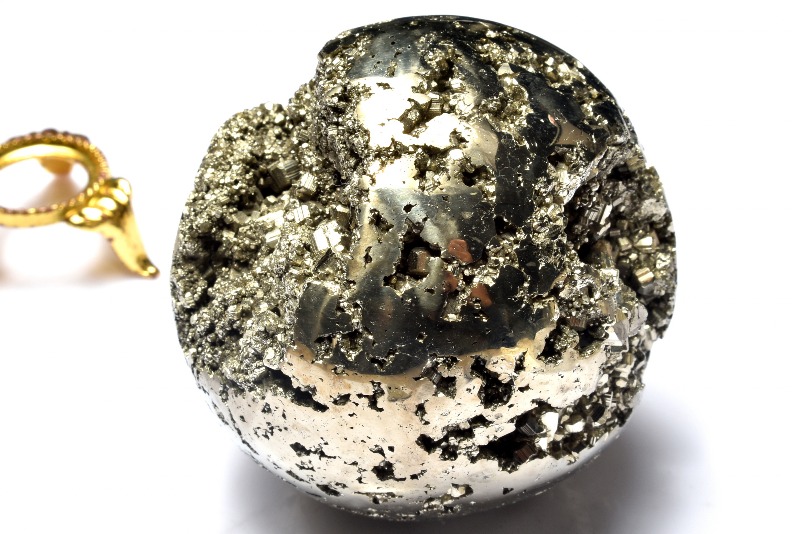 【1点物】煌めき真鍮色 パイライト 64x62mm 丸玉(台座付き) スフィア _CG6765【宅急便のみ】