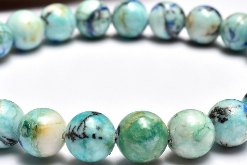【1点物】幻想的な模様 アズライトインバライト 8mm ブレスレット _MC954
