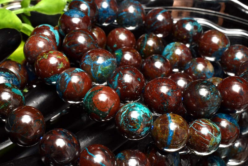 ブルーが本体の多くを占め、グリーンやブラウンなどのカラーが混ざり合って、出来ているため、丸く加工されたクリソコラは、宇宙から見た地球のような外観となっています。