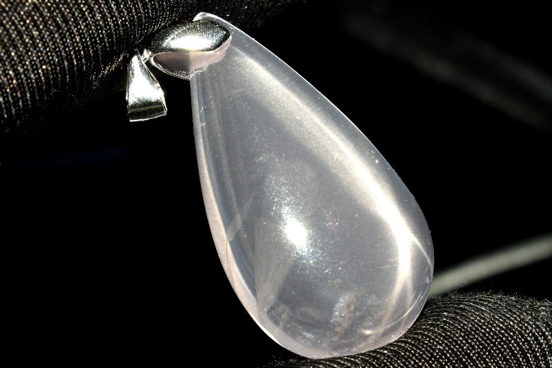 スターローズクォーツにあらわれるスター効果、またの名をアステリズムといいますが、このアステリズムにはエピアステリズムとダイアステリズムという2つの種類があります。これは反射光線によってスター効果がでるものがエピアステリズム、逆に透過光線によってスター効果がでるものがダイアステリズムとなります。簡単に言うと、前から照らしてスターがでるか、背面から光が入らないとスターがでないかということになります。スター効果を持つ代表的な石・ルビーやサファイアはエピアステリズムで、ローズクォーツの場合はダイアステリズムになります。エピアステリズムが表面に光が浮かぶように見えるのに対して、ダイアステリズムは石の中にスターが浮かんでいるように見えるため、神秘的です。普通に照明があたってもスターはでませんので、普通のローズクォーツと勘違いしてしまうこともあります.