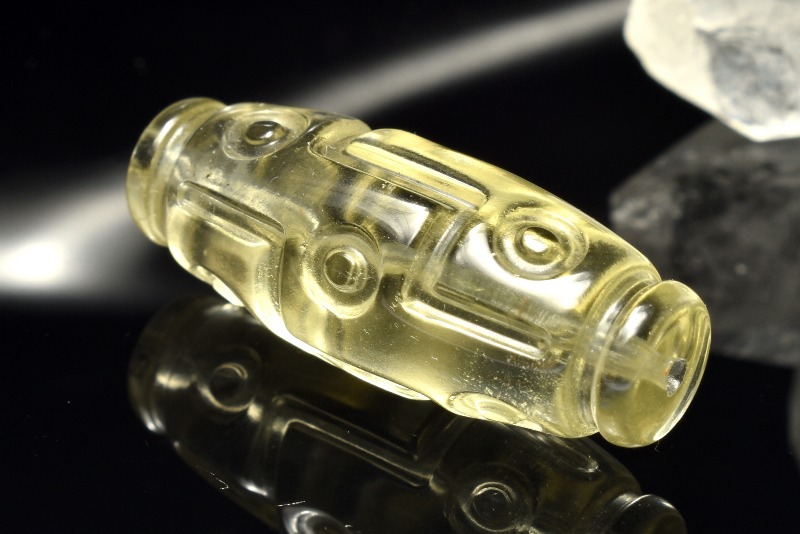 【1点物】AAA激レア☆透明レモンカラー リビアングラス 28x11mm 九眼天珠 ビーズ _PC7210