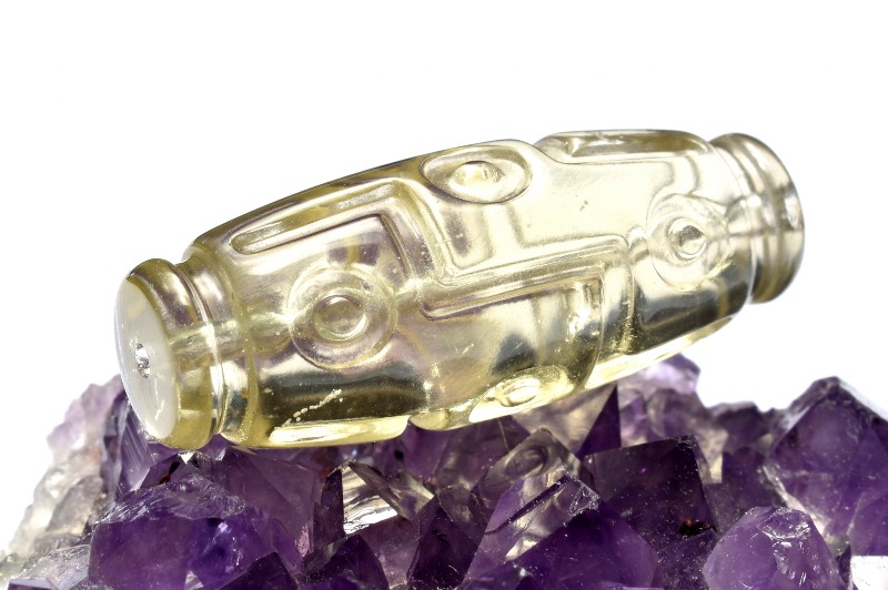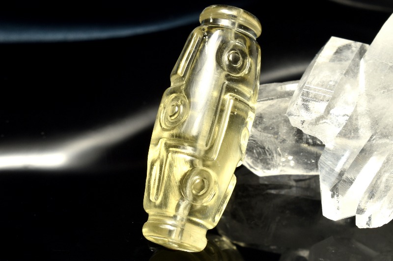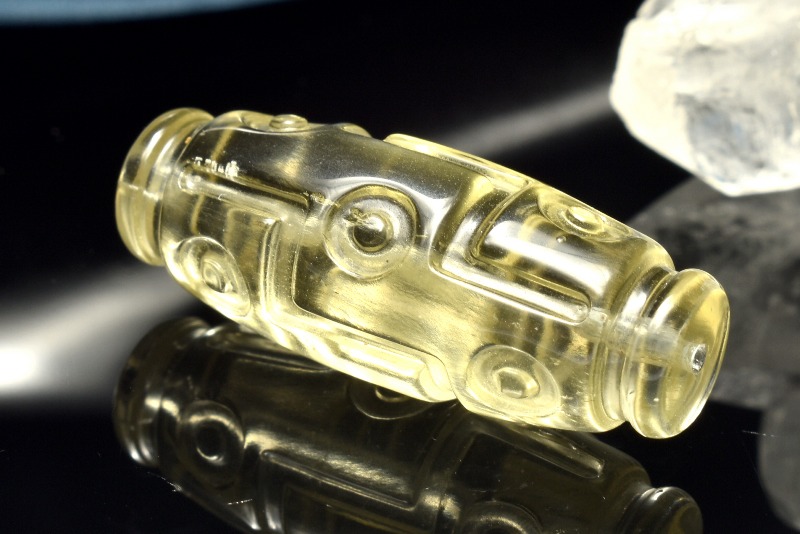 【1点物】AAA激レア☆透明レモンカラー リビアングラス 31x12mm 九眼天珠 ビーズ _PC7213