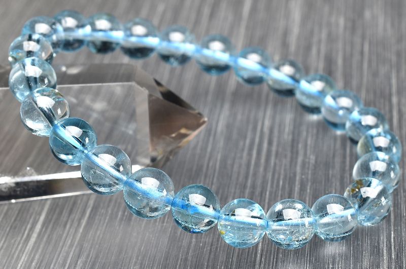 【1点物】AA☆高い透明度 ブルートパーズ 7.5mm ブレスレット _U8136