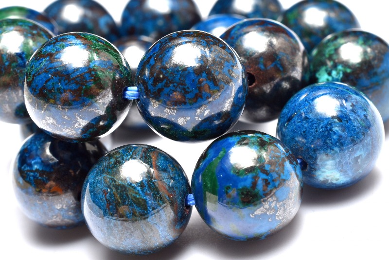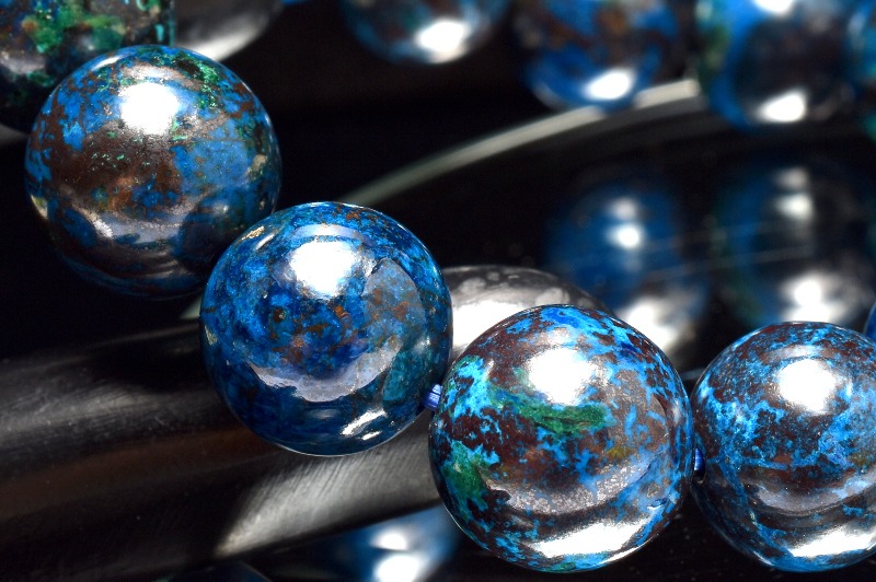 ブルーが本体の多くを占め、グリーンやブラウンなどのカラーが混ざり合って、出来ているため、丸く加工されたクリソコラは、宇宙から見た地球のような外観となっています。