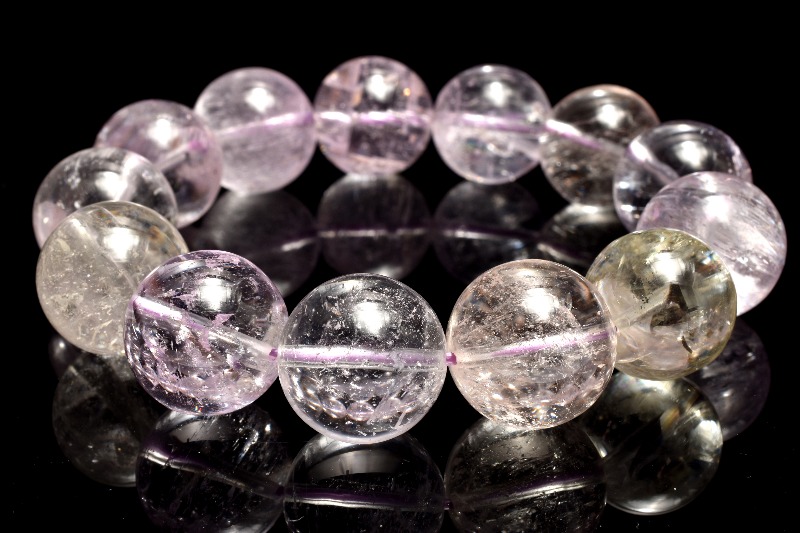 【1点物】透明繊維状クラック◇無垢 クンツァイト 15.5-16.5mm ブレスレット _MC1553