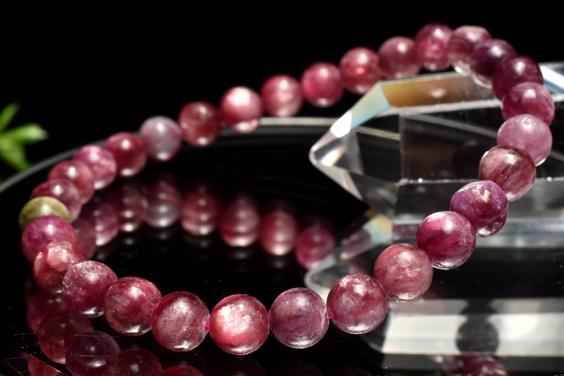 特徴・意味優しい濃い目のパープルピンクカラーと雲母の輝きが美しいブレスレットです。