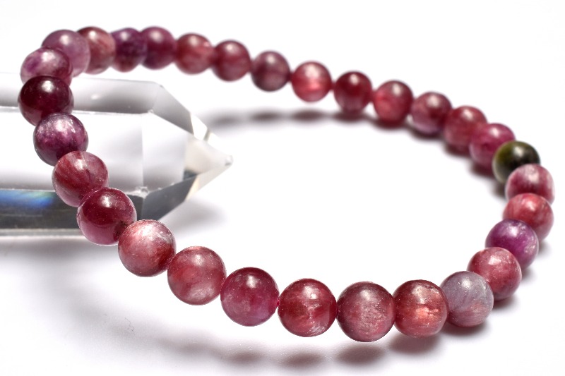 【1点物】雲母の輝き ピンクトルマリンインレピドライト 6mm ブレスレット _MC1677