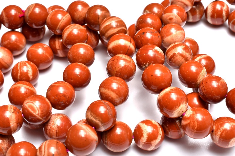 めのうに不純物が入り、半透明から不透明になったものを総称して、ジャスパーと呼ぶ。レッドジャスパーは、酸化鉄を含有することにより、赤色に発色したジャスパー。独特の縞模様が美しく、自然の風景画のような模様を見せる石。